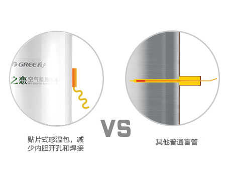 貼片式感溫包設(shè)計,杜絕感溫盲管泄漏隱患 采用貼片感溫包,可減少內(nèi)膽體開孔,減少焊點,同時取消感溫盲管,減少感溫盲管腐蝕泄漏的隱患;工藝性更好,更耐用。 |